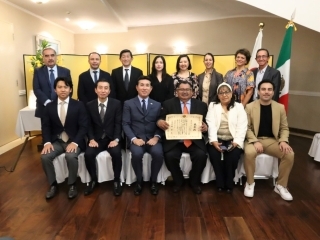 6月20日、令和4年度外務大臣表彰式が行われ、日本とメキシコ間の相互理解の促進及び友好親善に貢献された以下2名の方に、福嶌大使から外務大臣表彰状が授与されました。